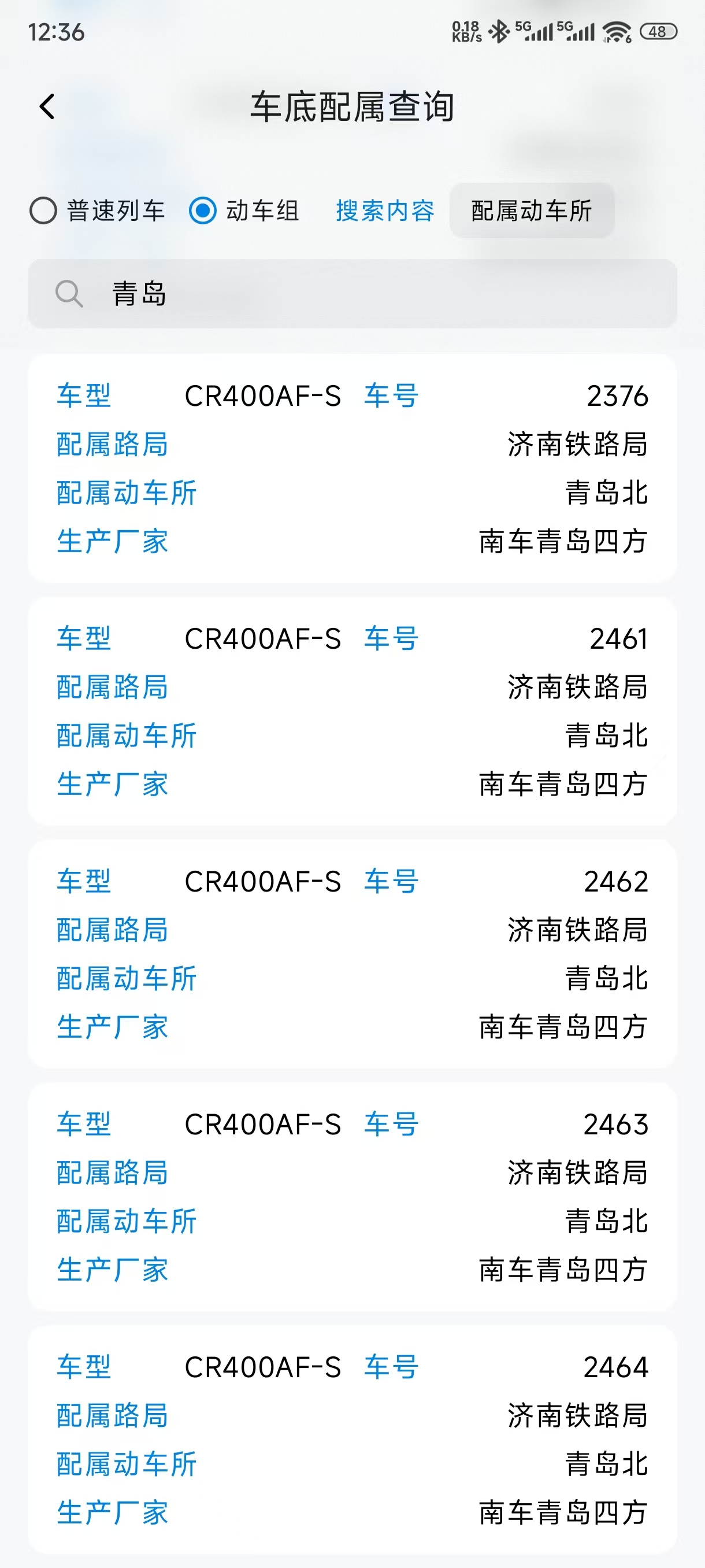 - 车底配属查询:查询某路局或某动车所的列车型号