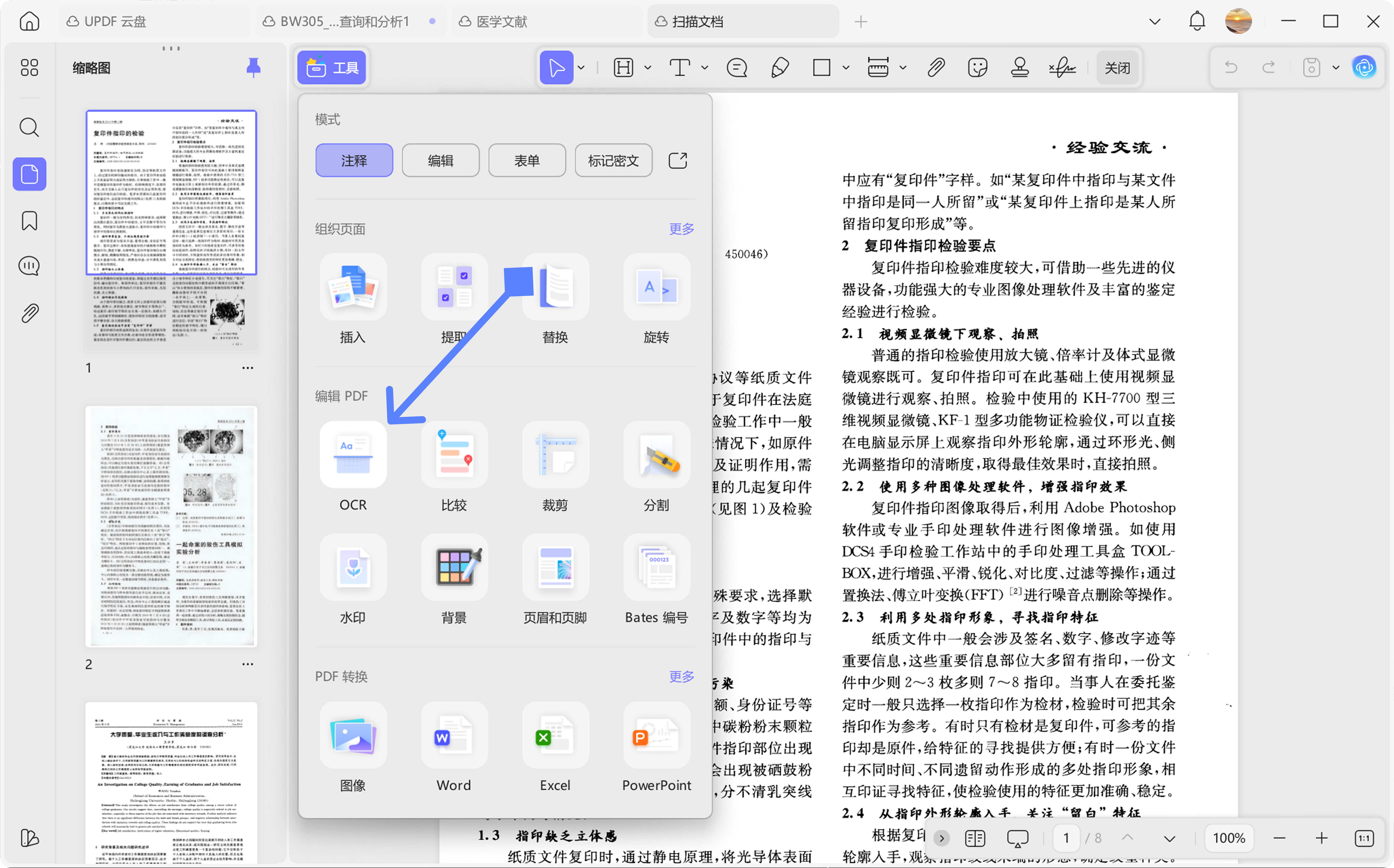 此外,UPDF 还提供 OCR 文字识别,可精准识别扫描件或图片中的文字,支持中文、英文等 30+ 语言。